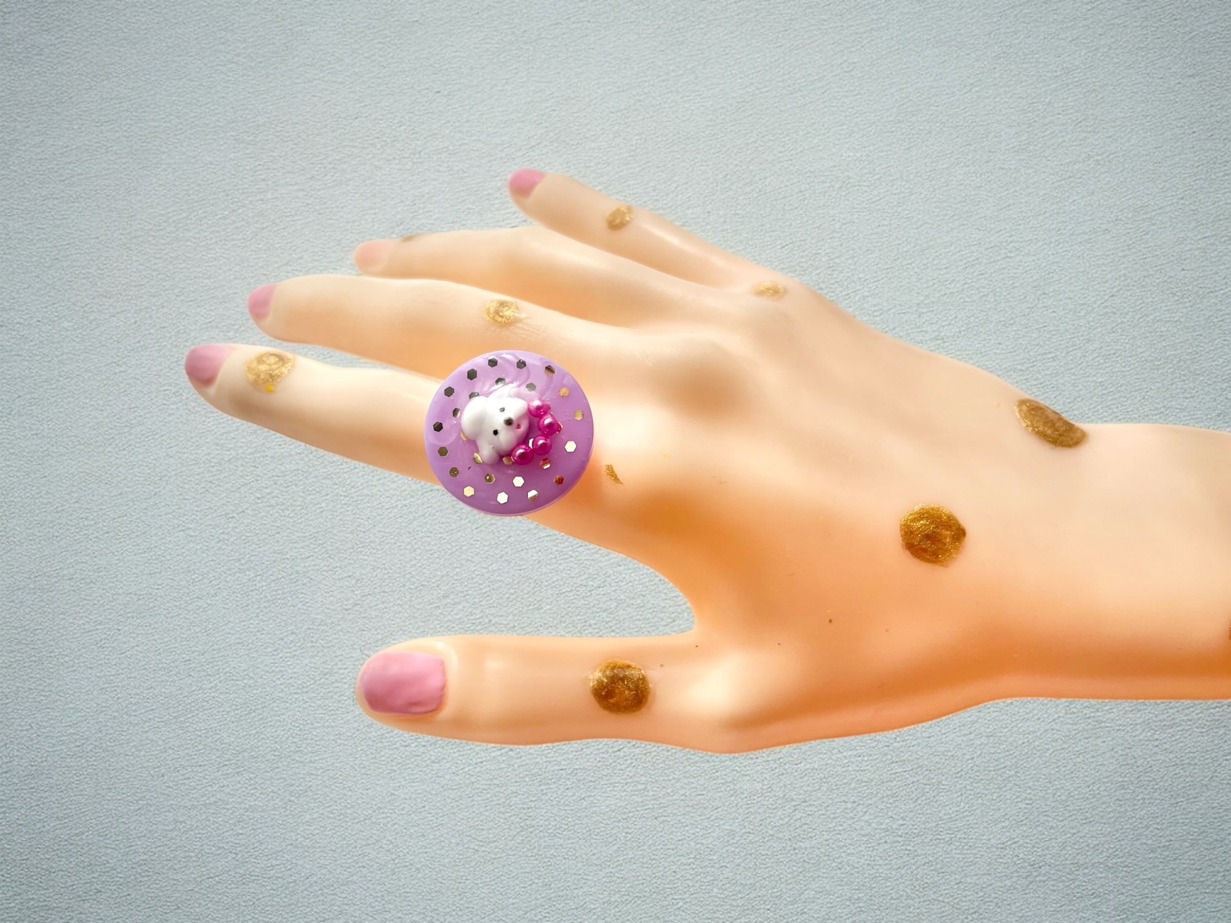 おもちゃ感とレトロな雰囲気がとてもかわいいリングです。