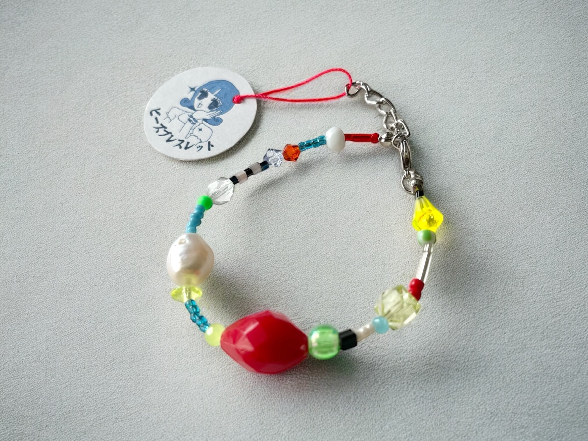 レトロなビーズで作られた桃甜瓜さんのかわいいブレスレット