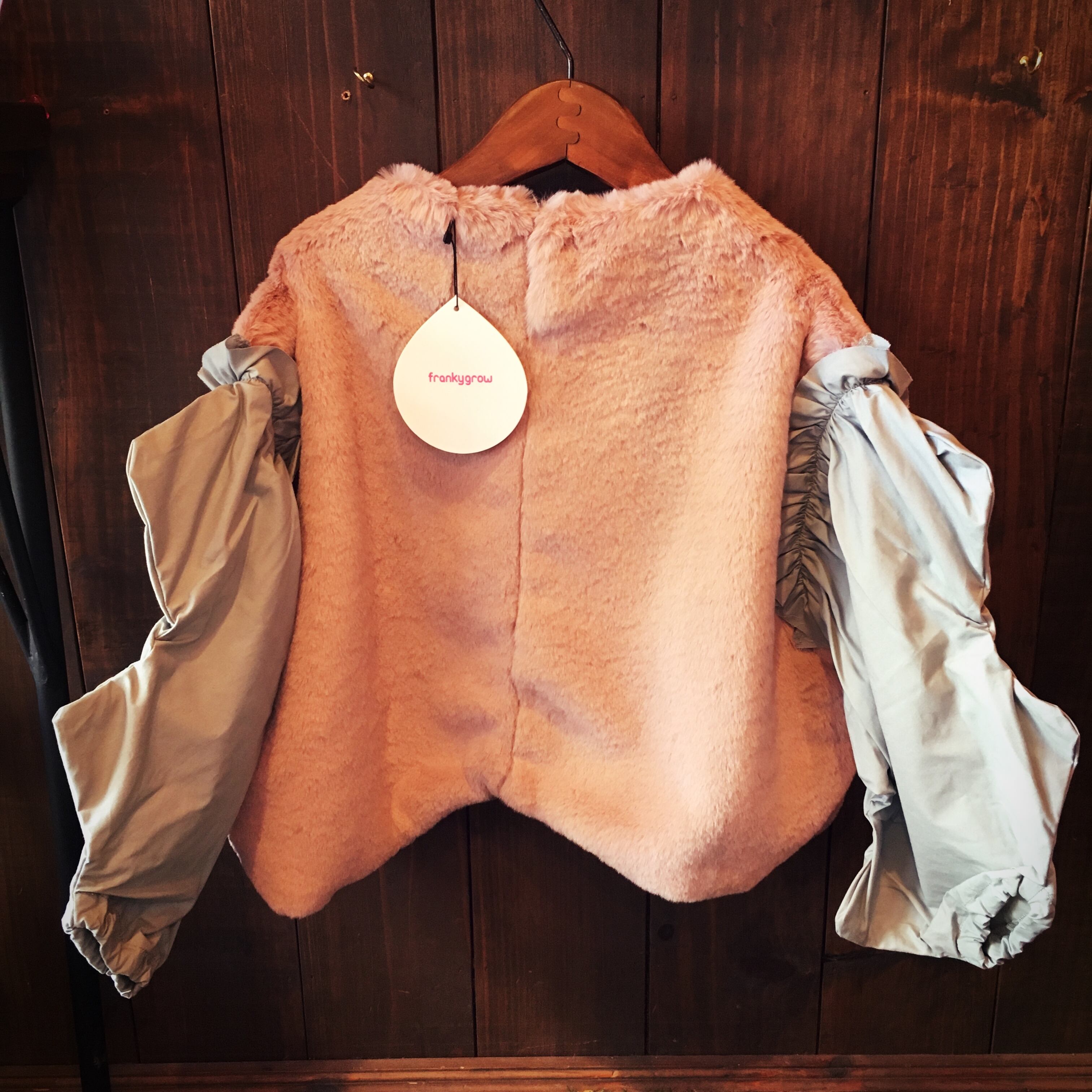 触り心地の柔らかいボア素材に波のような形のボリューム袖がかわいいトップスです。