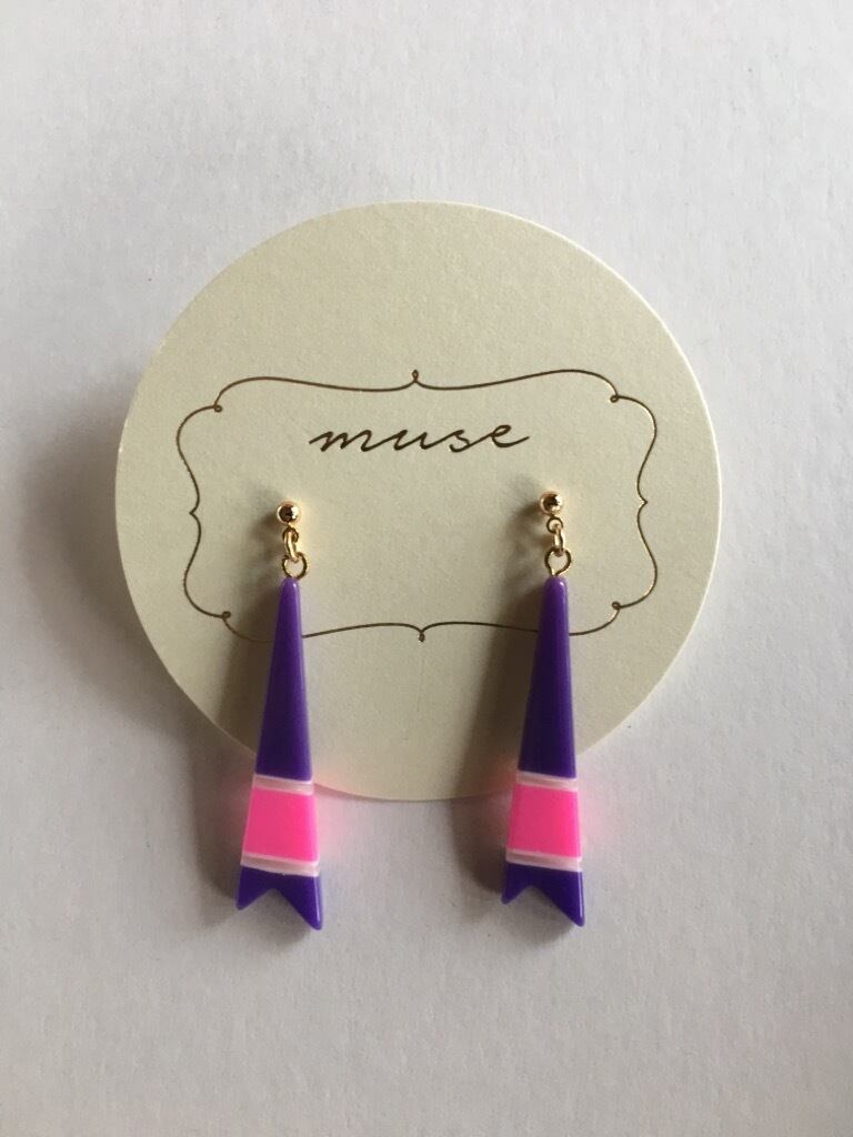 ピンクと紫の色合わせがかわいいヴィンテージパーツのピアスです。