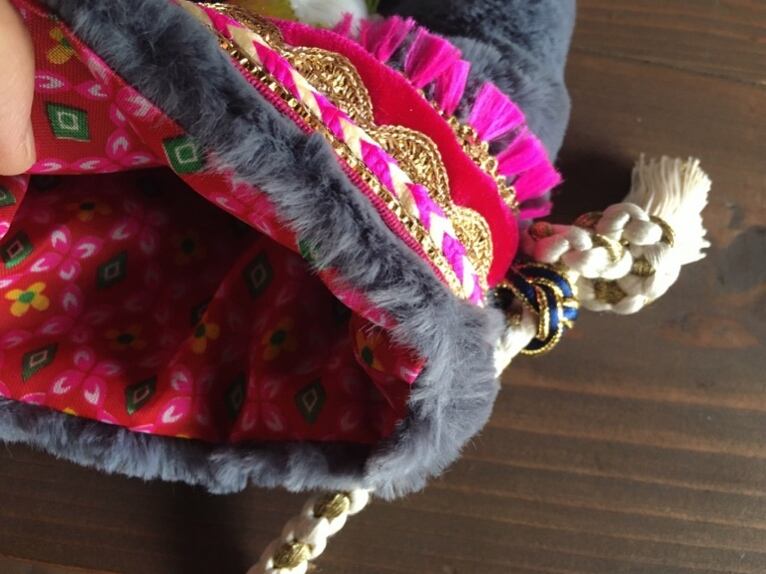 裏地やショルダー紐もとてもかわいく、細部にまで凝ったデザインが、さすがomatsuri houseさん