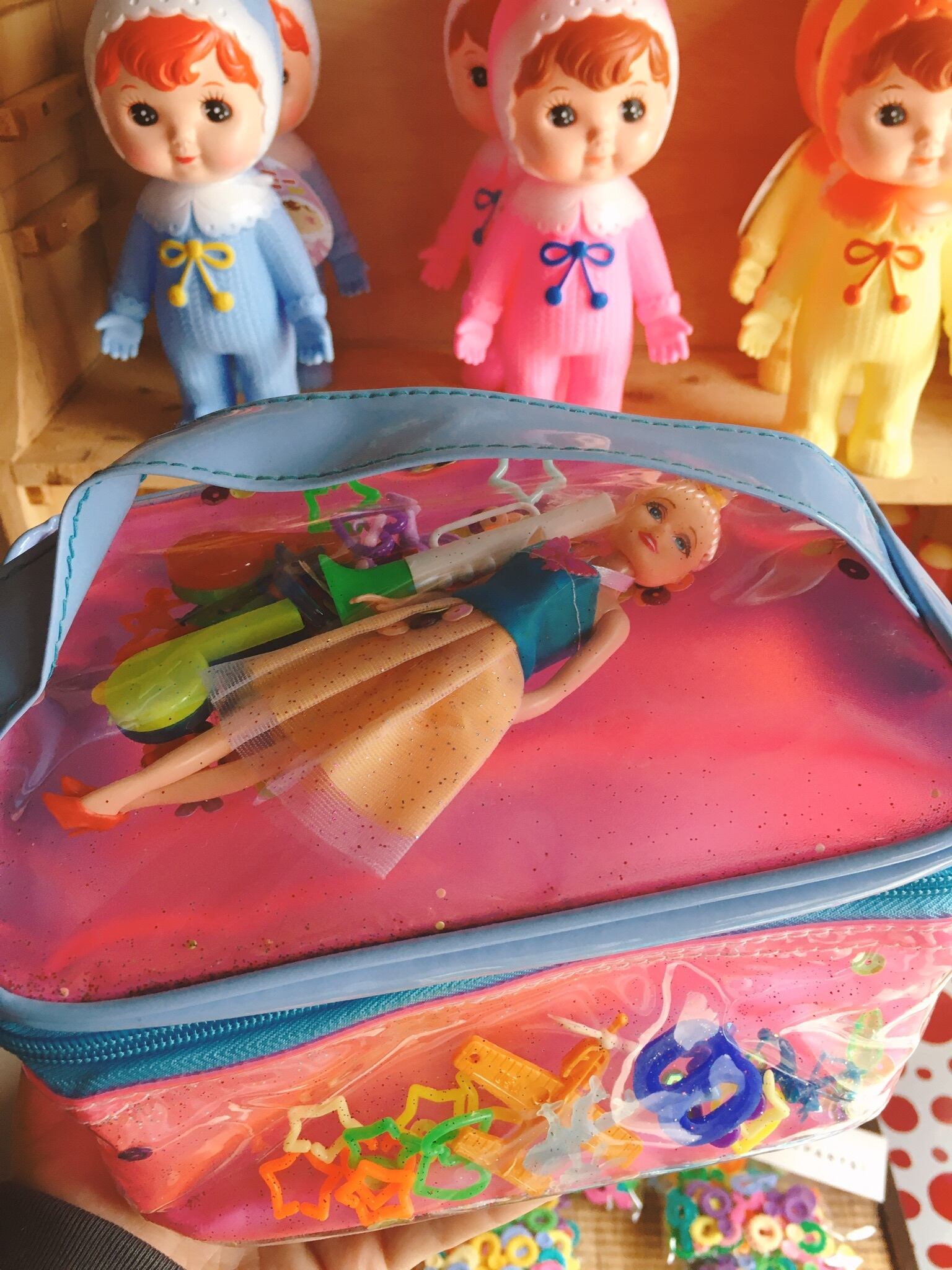 お人形さんが入ったキッチュなバニティポーチ