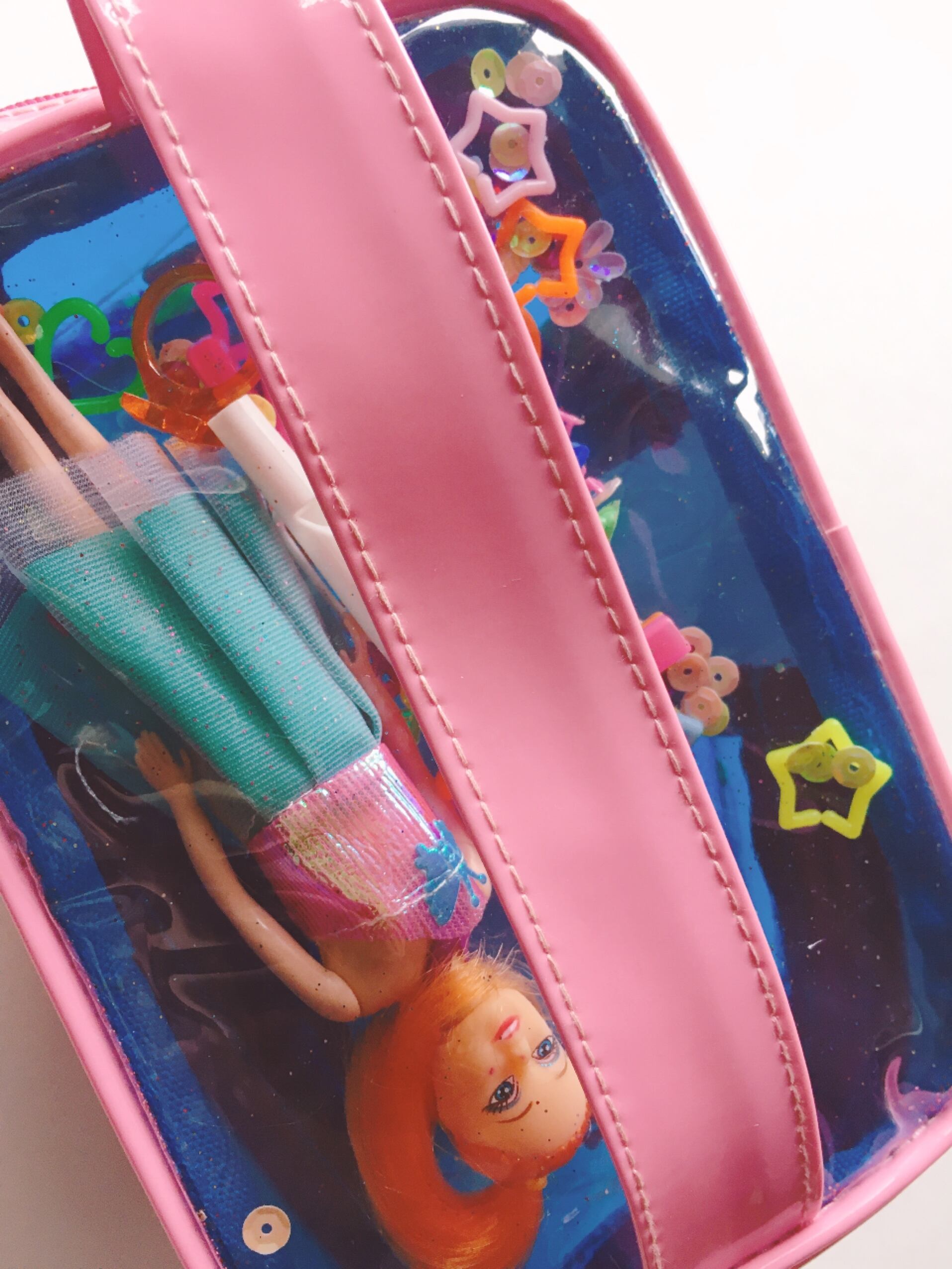 お人形さんが入ったキッチュなバニティポーチ