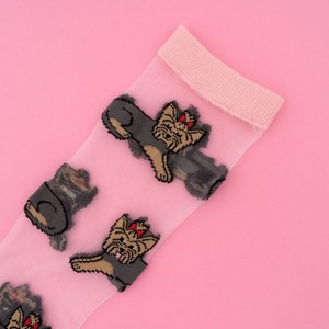 なんとも言えないかわいい表情のヨークシャテリ柄ソックスです。
