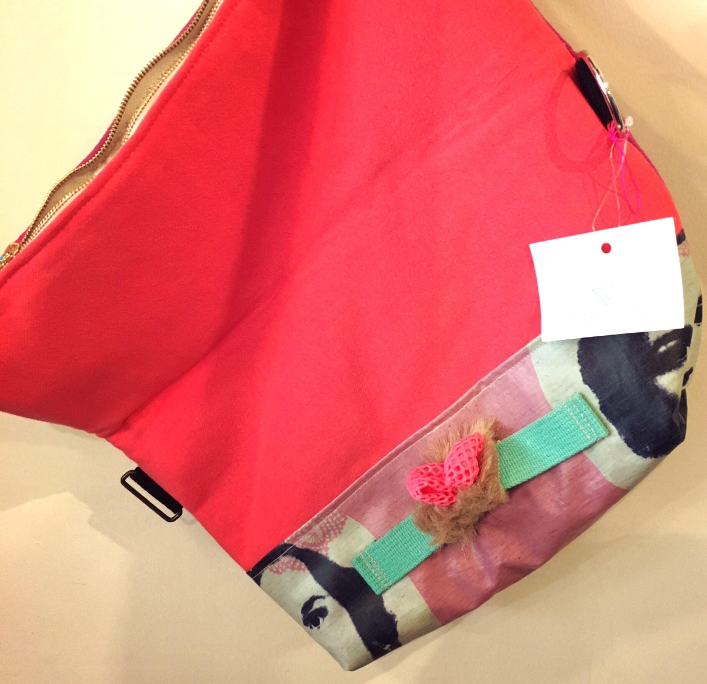 素敵なテキスタイルがコラージュされたようなクラッチバッグ