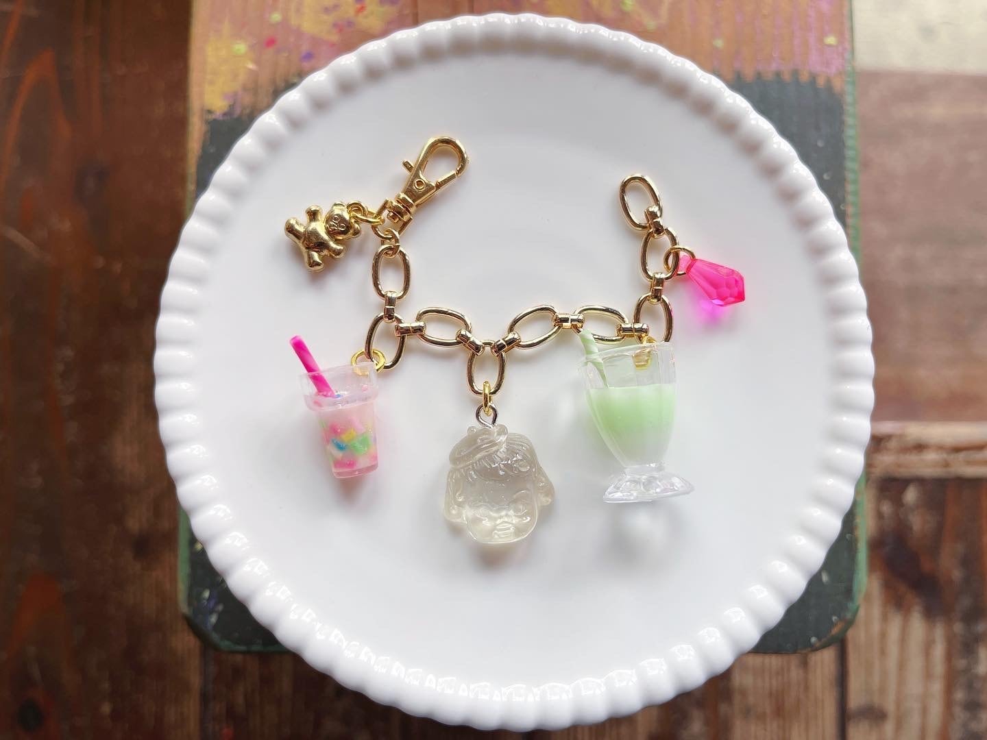 透明な女の子やかわいいドリンクチャームがついたバッグチャーム