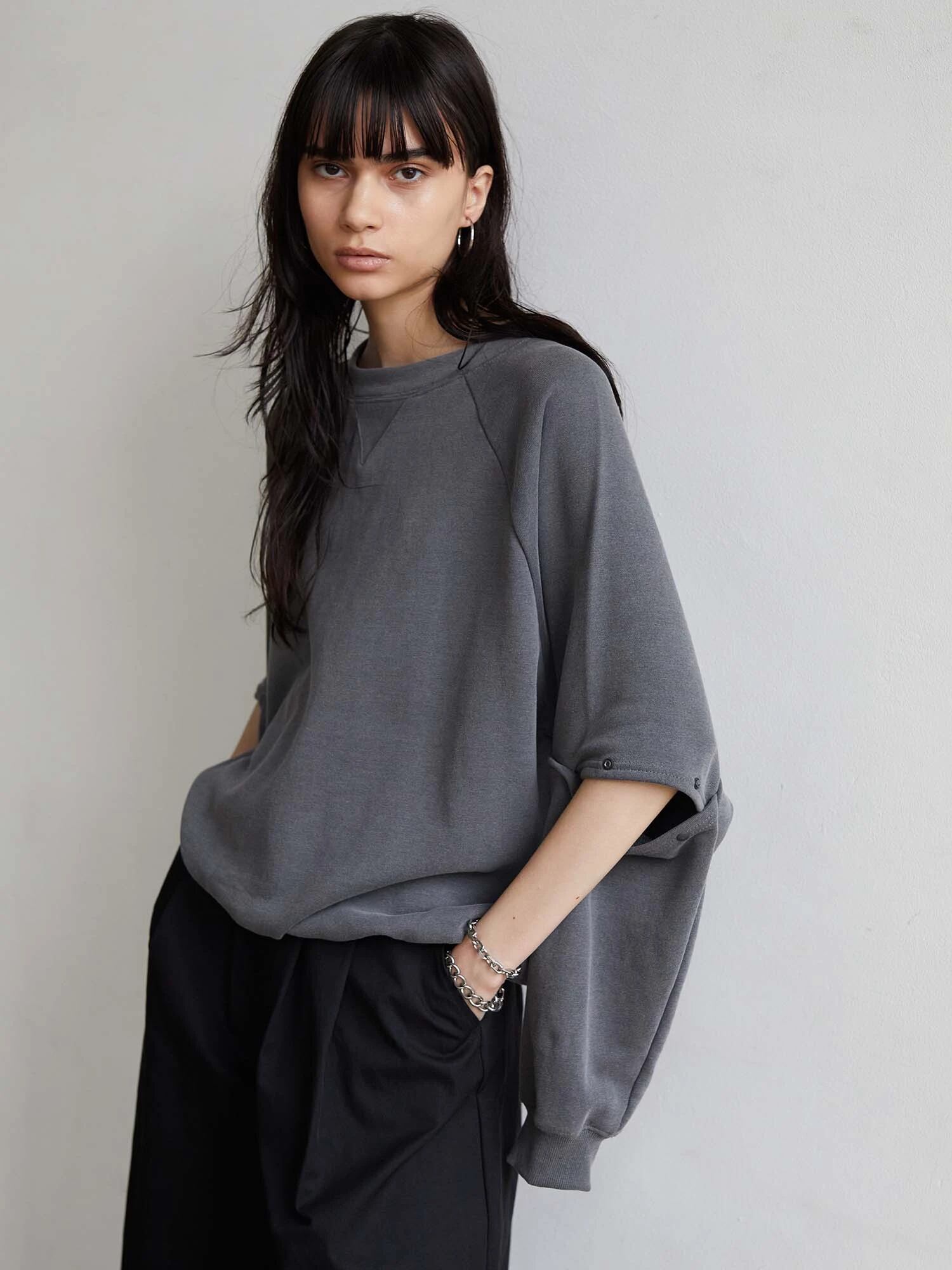 程よく肩のラインをドロップさせたボックスシルエットに。