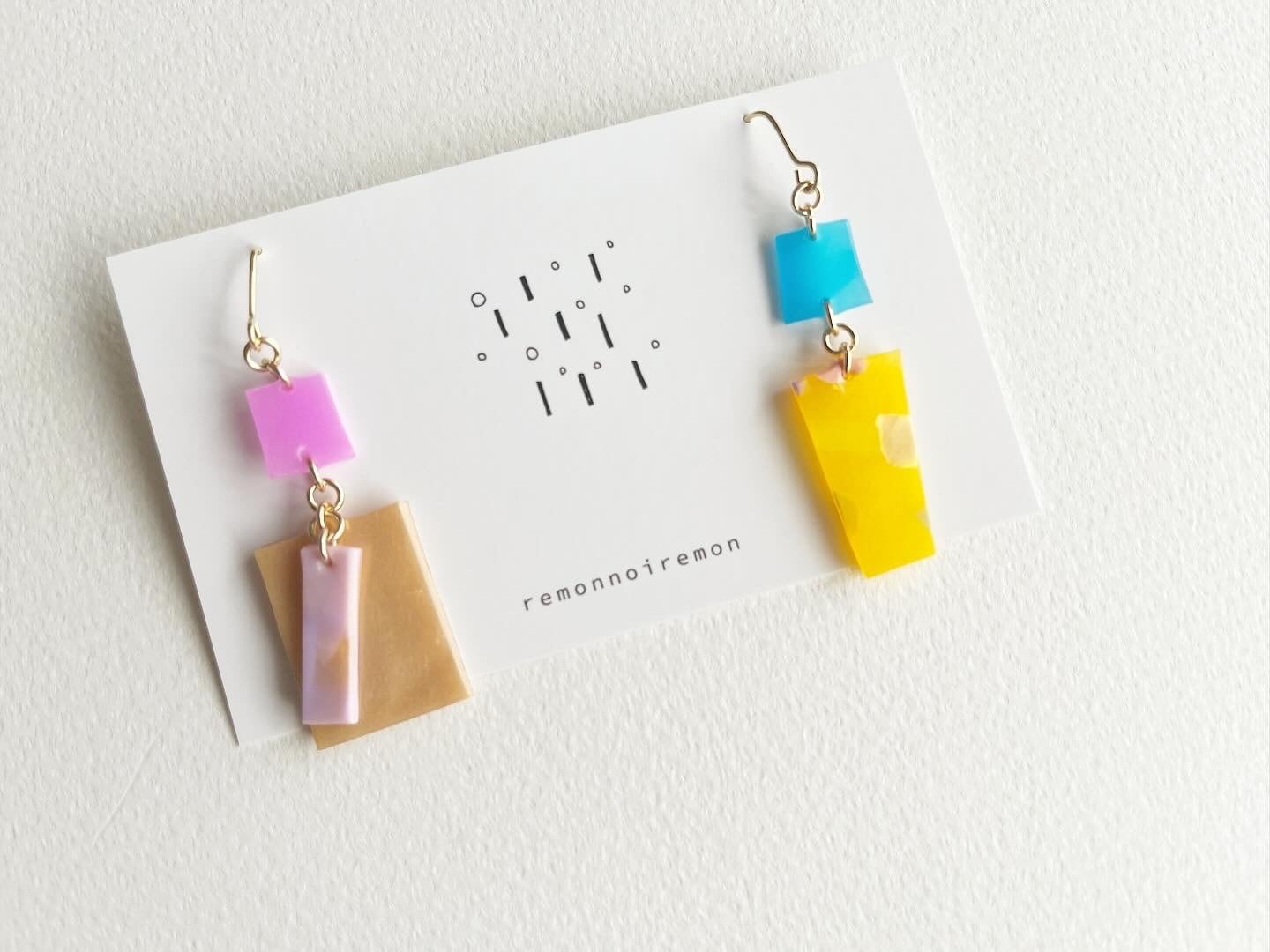動くたびに鮮やかな色のパーツが揺れて素敵なピアス