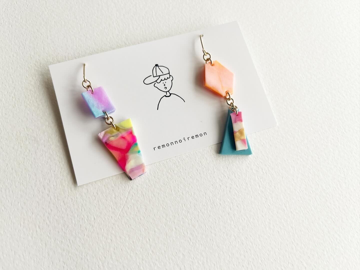 動くたびに鮮やかな色のパーツが揺れて素敵なピアス