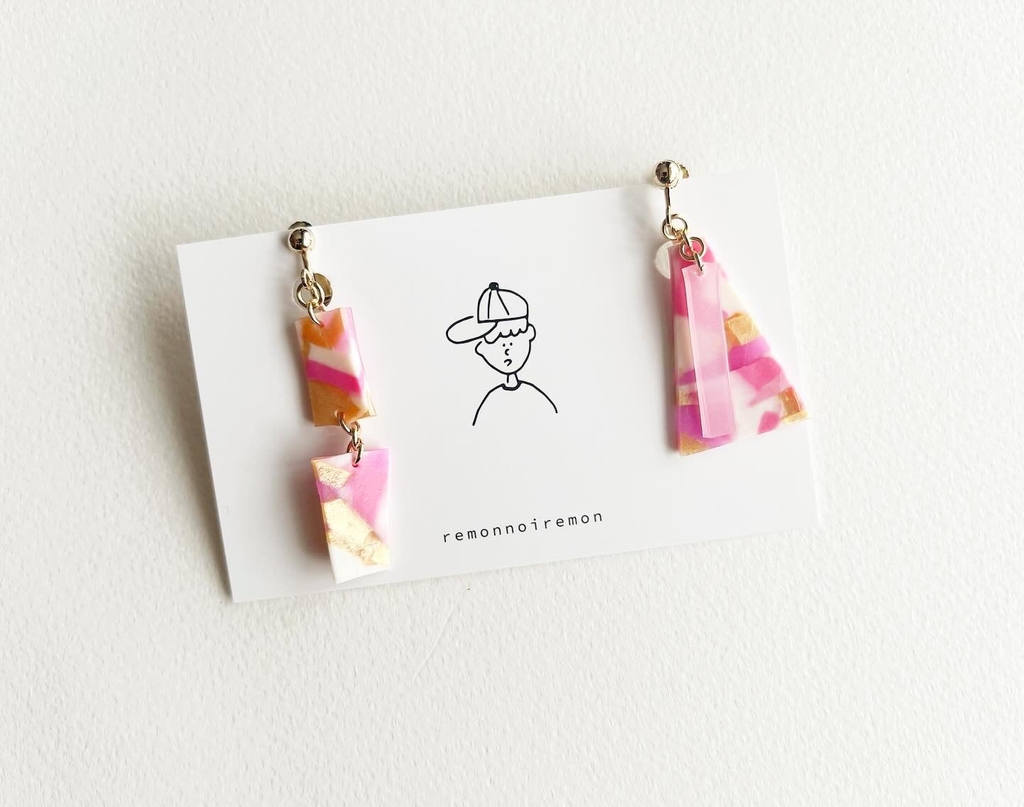 動くたびに鮮やかな色のパーツが揺れて素敵なイヤリング