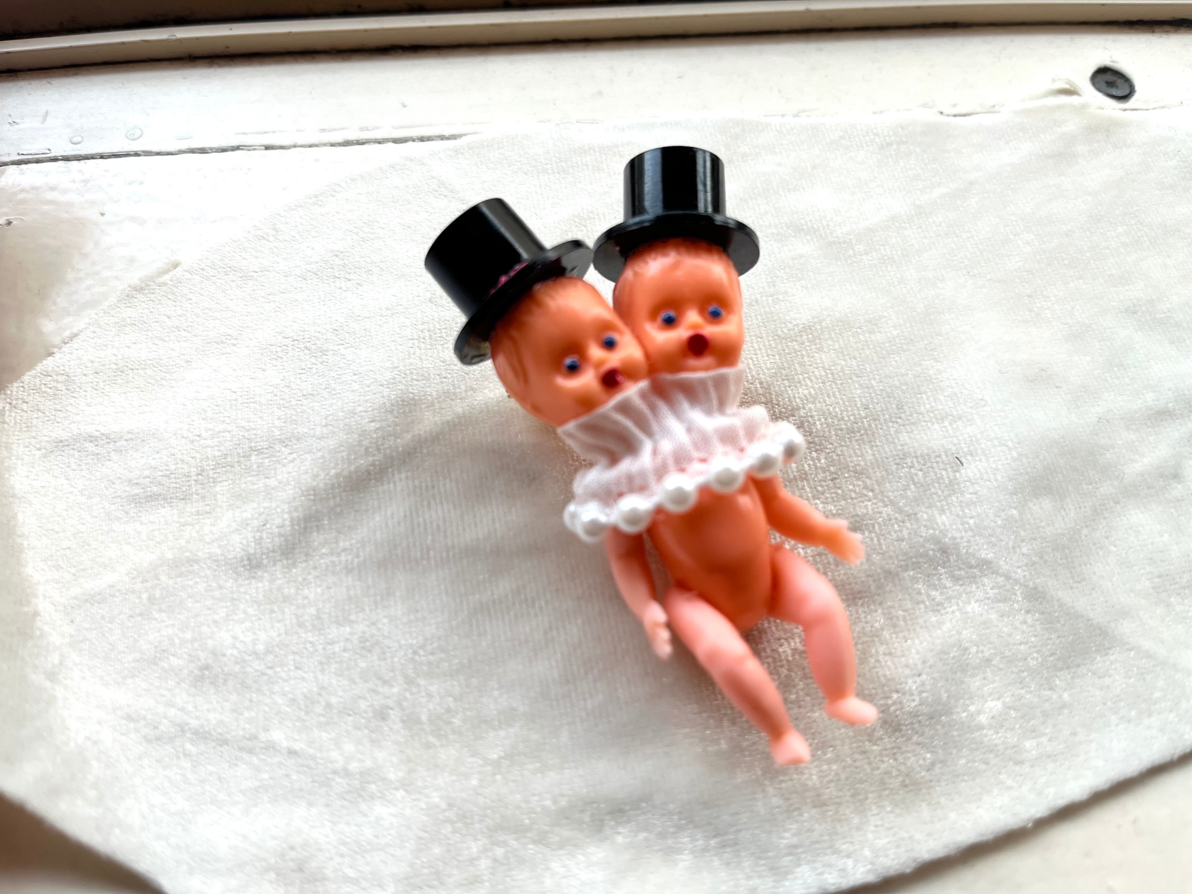 ユニークでパンチがありながら、愛らしさもあるERIZABETHさんの双頭ベイビーブローチ