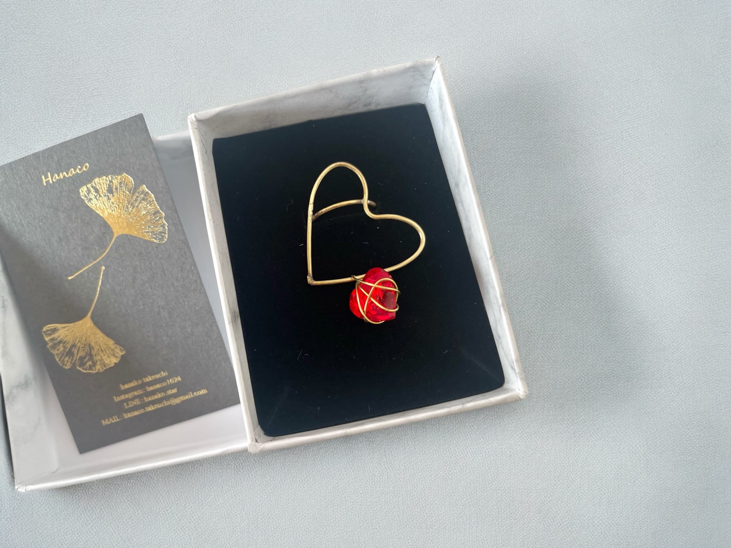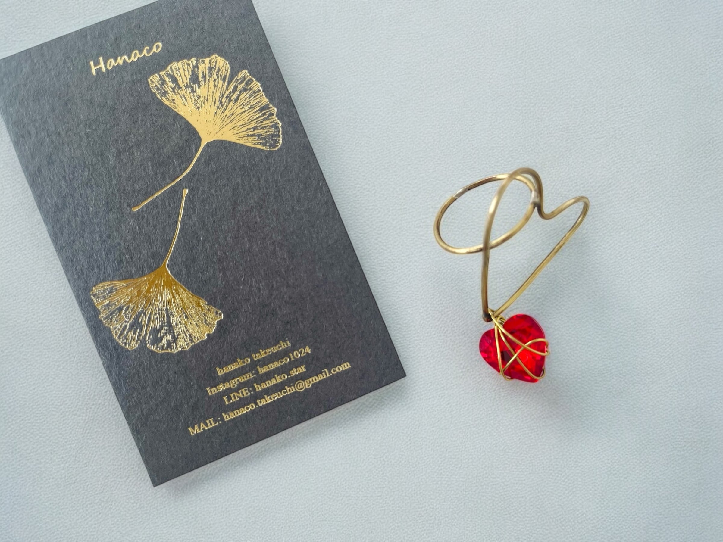 宝石部分が揺れておしゃれなリングです。こちらは中のアクリルストーンもハートの形です。