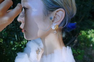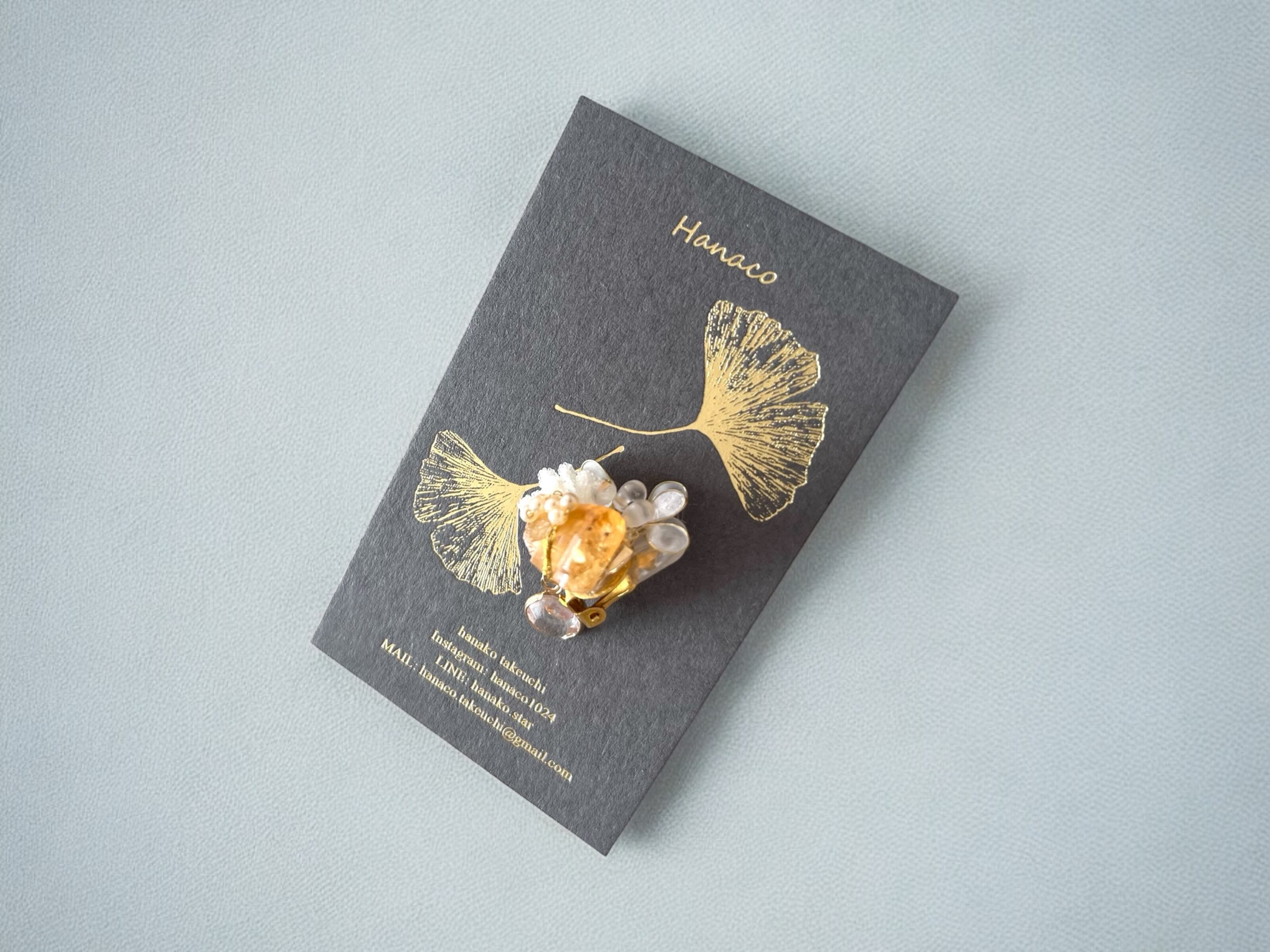 シトリンという天然石に透明の揺れる石がついたきれいなイヤリング