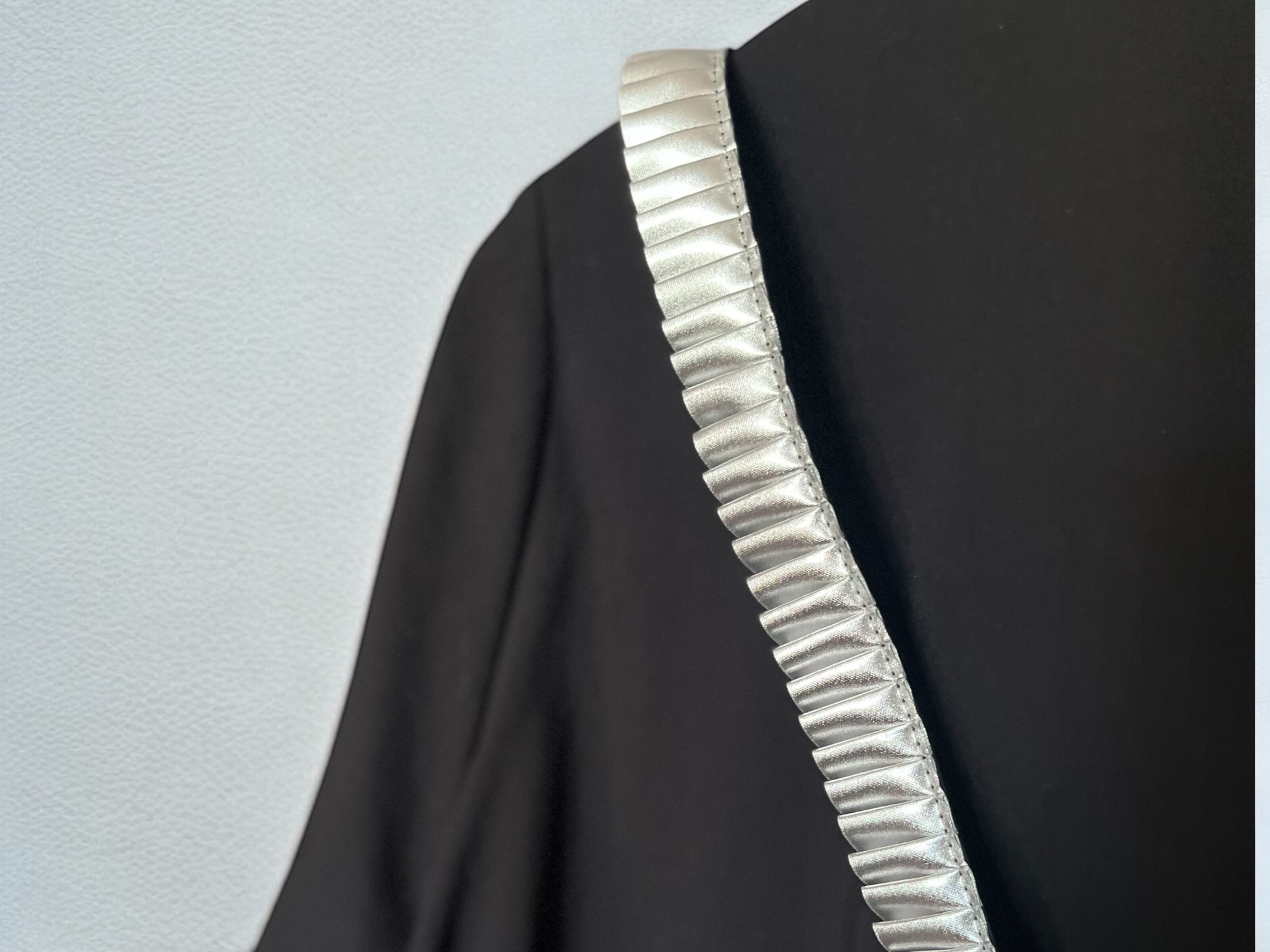 細めのメタリックシルバーのサスペンダー