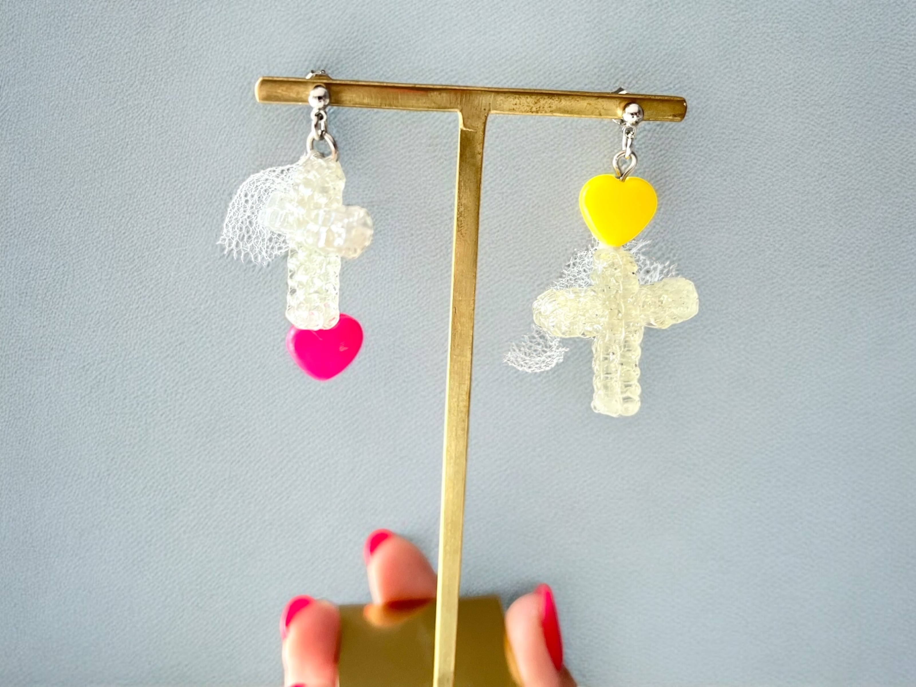 ハートとクロスの組み合わせがかわいいピアスです。