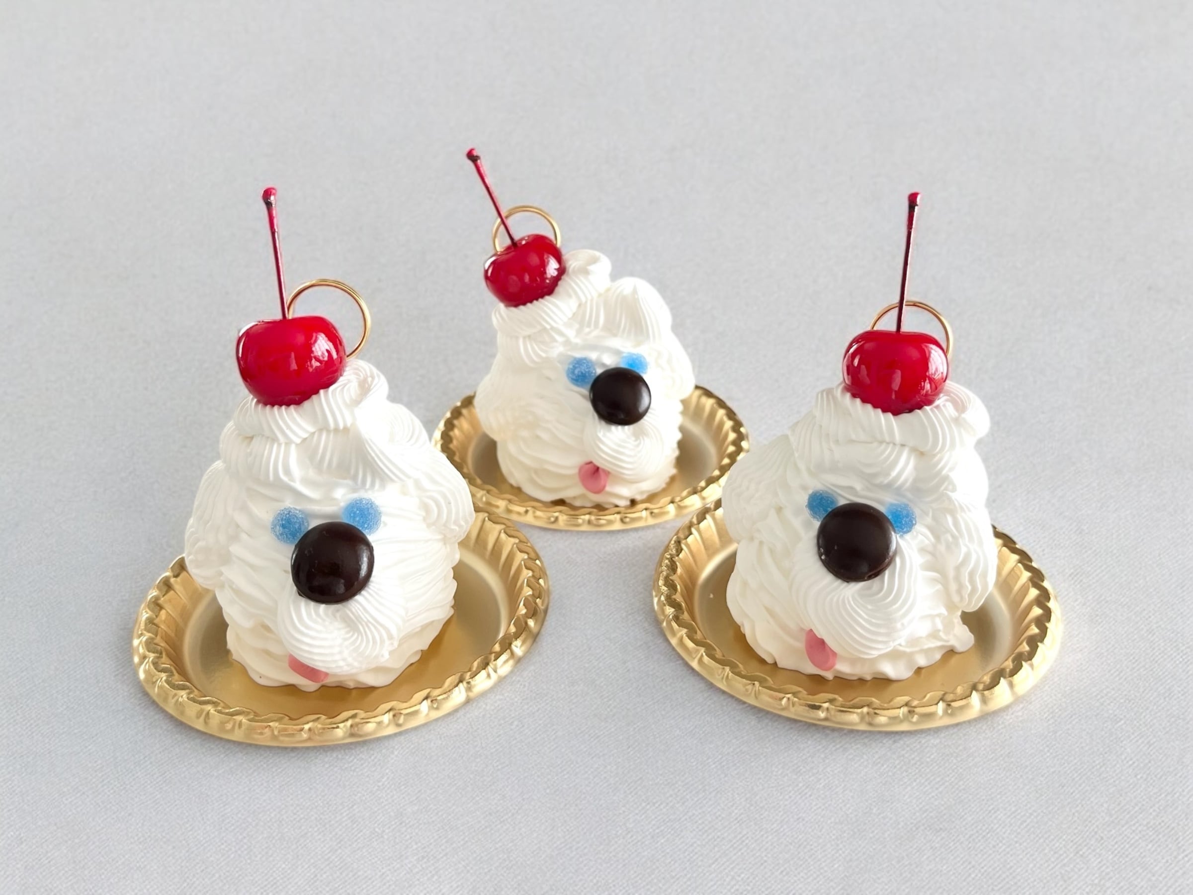 レトロな喫茶店で出てきそうな、ブルーのゼリーおめめにぺろっと出したピンクの舌がなんとも言えない垂れ耳クリーム犬