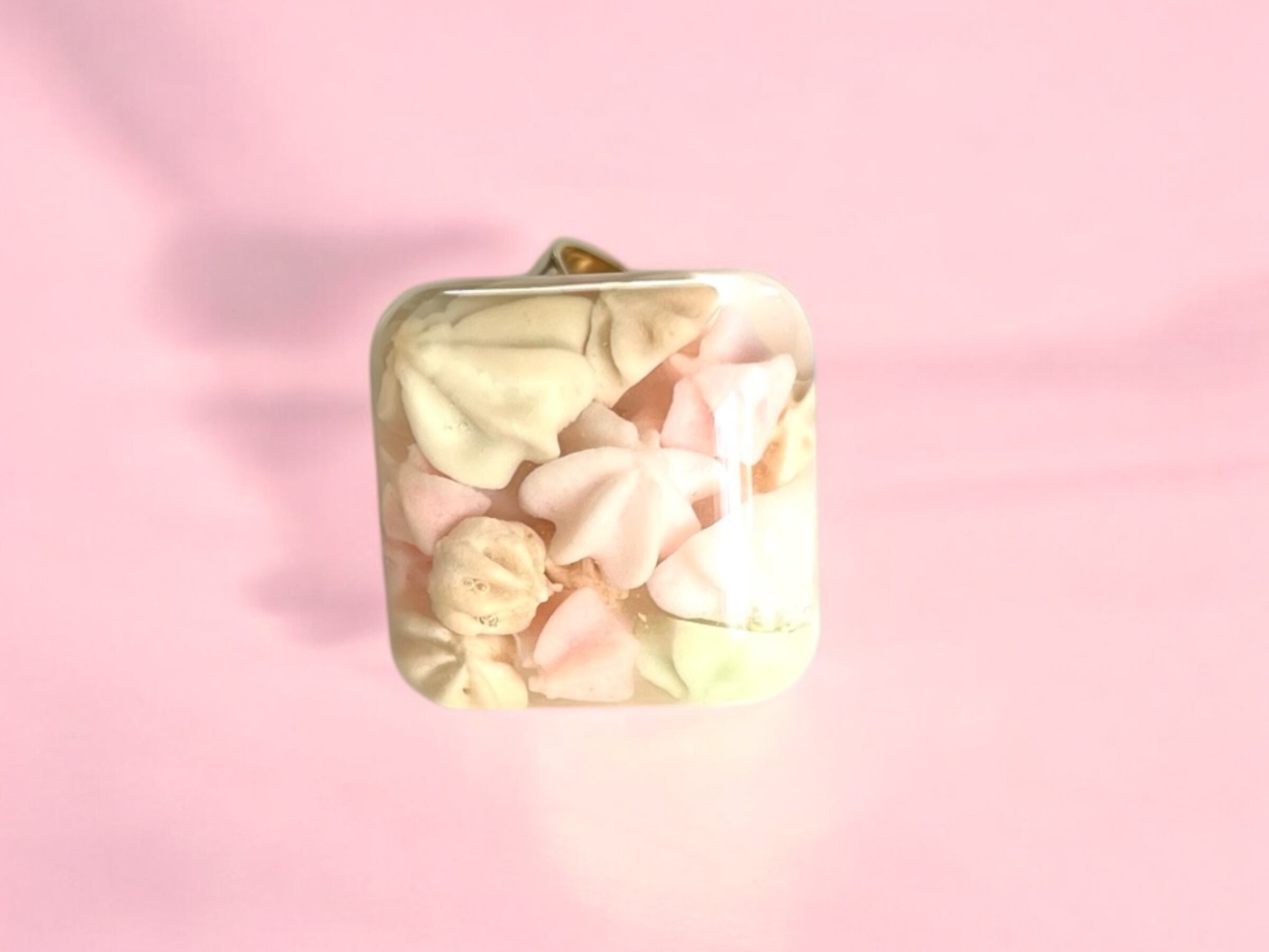 本物そっくりな、パステルカラーのお砂糖が閉じ込められたかわいいリング
